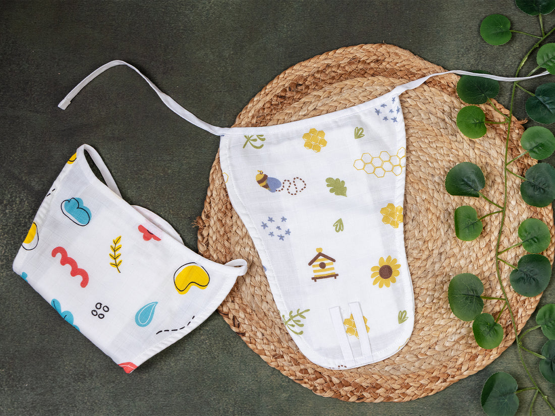 Our premium muslin nappy features adorable nature-inspired prints with bees, honeycombs, sunflowers, and garden elements...