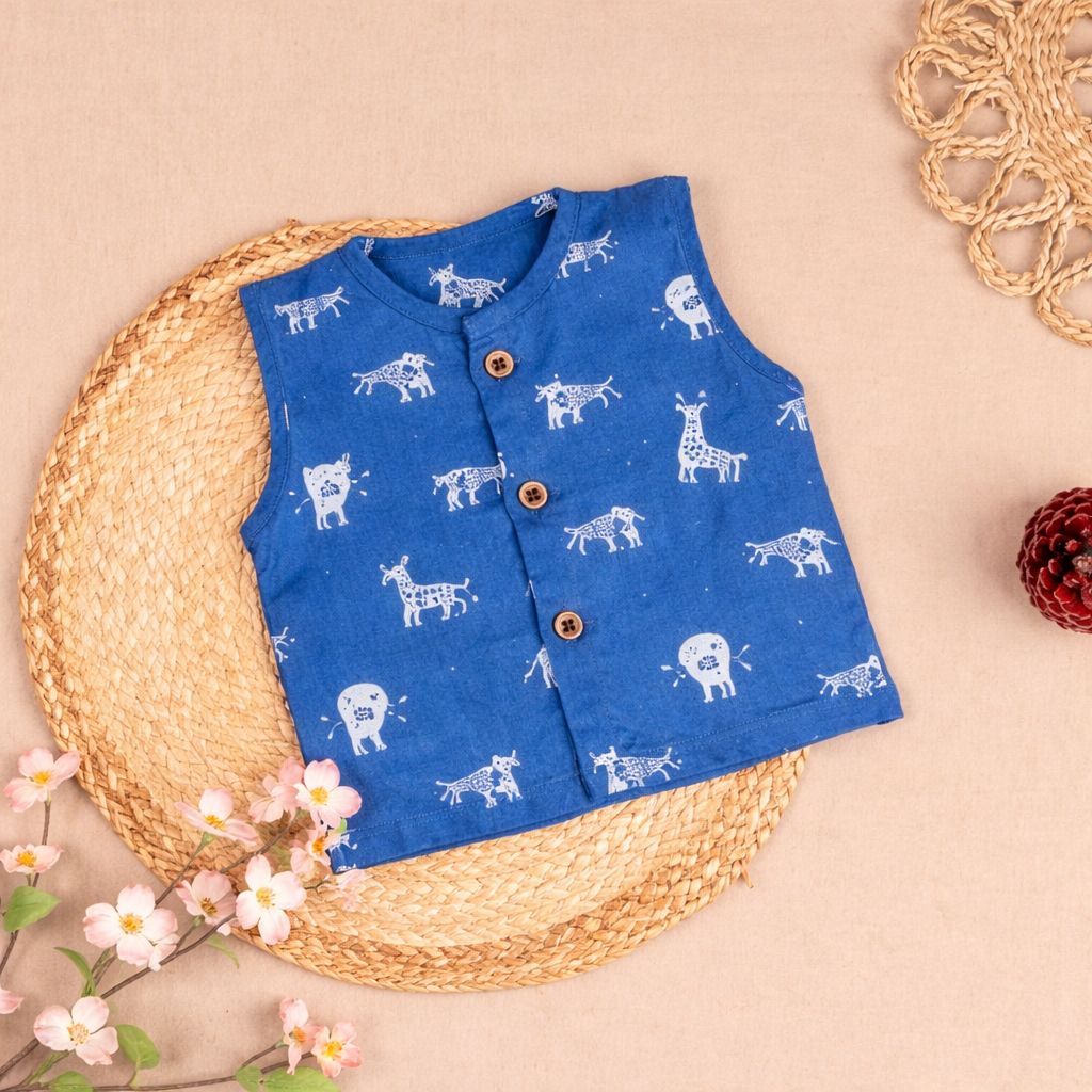 Dress your little one in this delightful blue muslin sleeveless vest, perfect for both style...