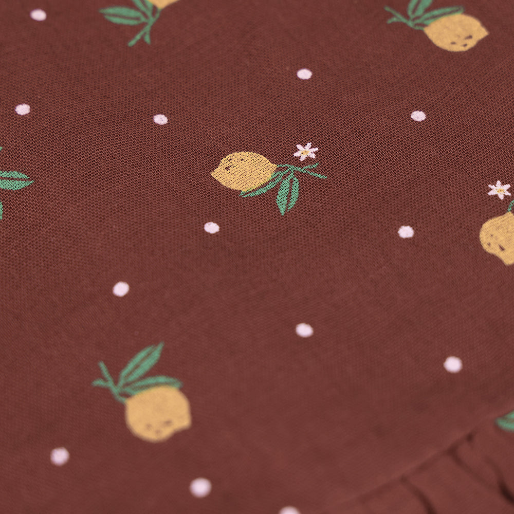 Sweet and stylish, this cocoa-toned co-ord set brings a warm, playful vibe to your little one’s wardrobe. Crafted from soft, breathable fabric, it ensures all-day comfort for active kids. The top features charming ruffled sleeves and a flared hem for a cute, twirl-ready look. Delicate floral prints add a touch of whimsy and elegance. The matching pants come with a gentle elastic waistband for an easy, secure fit. Perfect for casual outings, playdates, and everyday adventures in cozy style.